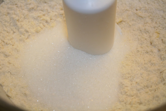 Ha vaniljesukker og melis i kjøkkenmaskinen. Kjør kjapt for å bli kvitt klumper.